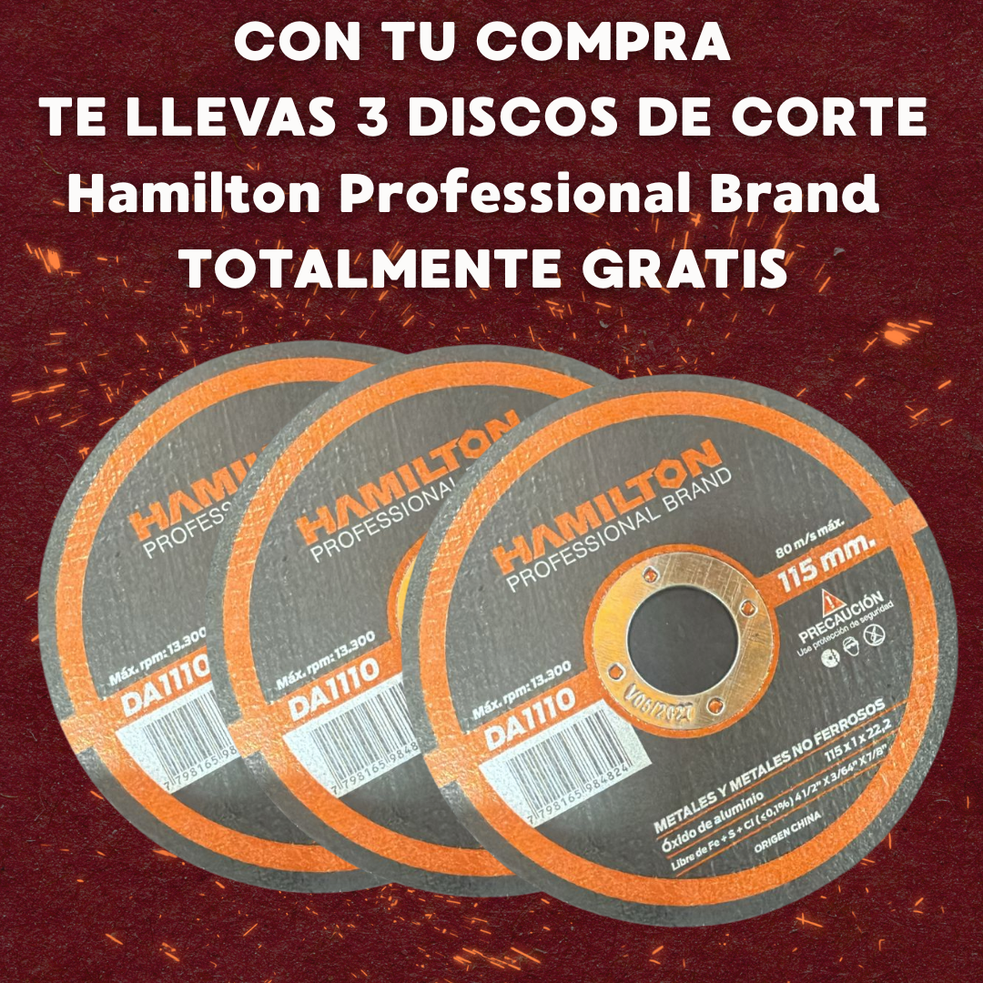 Con la compra de tu amoladora, te llevás 3 discos de corte Hamilton Professional Brand totalmente GRATIS, ideales para obtener cortes precisos, rápidos y seguros desde el primer uso. (1080 x 1920 px) (1080 x 1080 px).png)
